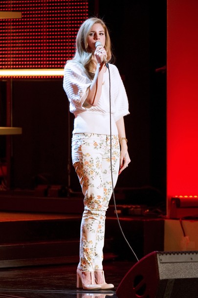 On the French nightly news and talk show, Le Grand Journal, Lana paired a white sweater with nude t-strap patent leather mary janes and Mandy High Waist Retro Slim Jeans from Citizens of Humanity. This look just screams Spring and I love its vintage feel.