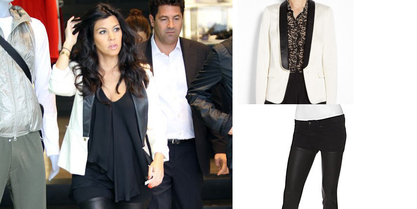 For the occasion, Kourtney rocked a Cream Tuxedo Jacket from Tibi with a black ruffle tank, R13 Leather and Black Denim Chaps and pumps. She looked gorgeous and I definitely want to recreate this look for Spring.