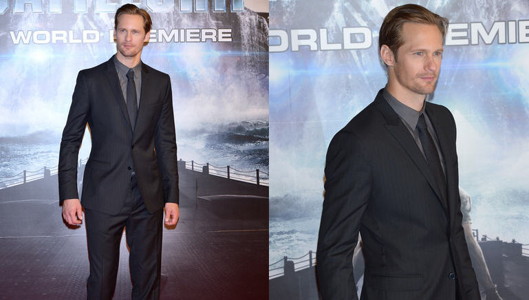 “Battleship” is set to hit theaters on May 18th, thus the stars of the film are doing worldwide promotion. Alexander Skarsgard is one of those stars and at the Tokyo Premiere, he wore an expertly-tailored suit from Dolce & Gabbana.