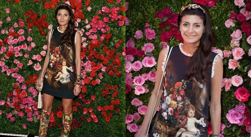 Giovanna Battaglia is always a risk taker and trendsetter in the fashion department and at the 7th Annual Chanel Tribeca Film Festival Artists Dinner in New York City, she officially became the first person to rock a look from Dolce & Gabbana’s Fall 2012 collection.