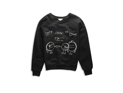 Her raglan sweatshirt features a funny “Don’t Nickel and Dime Me!” graphic, to add some humor into your wardrobe. It is unfortunately no longer available at www.forever21.com which is sad because it only retailed for $17.