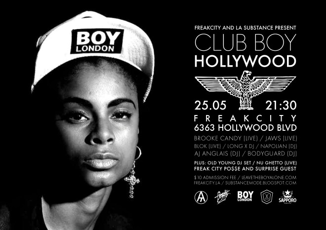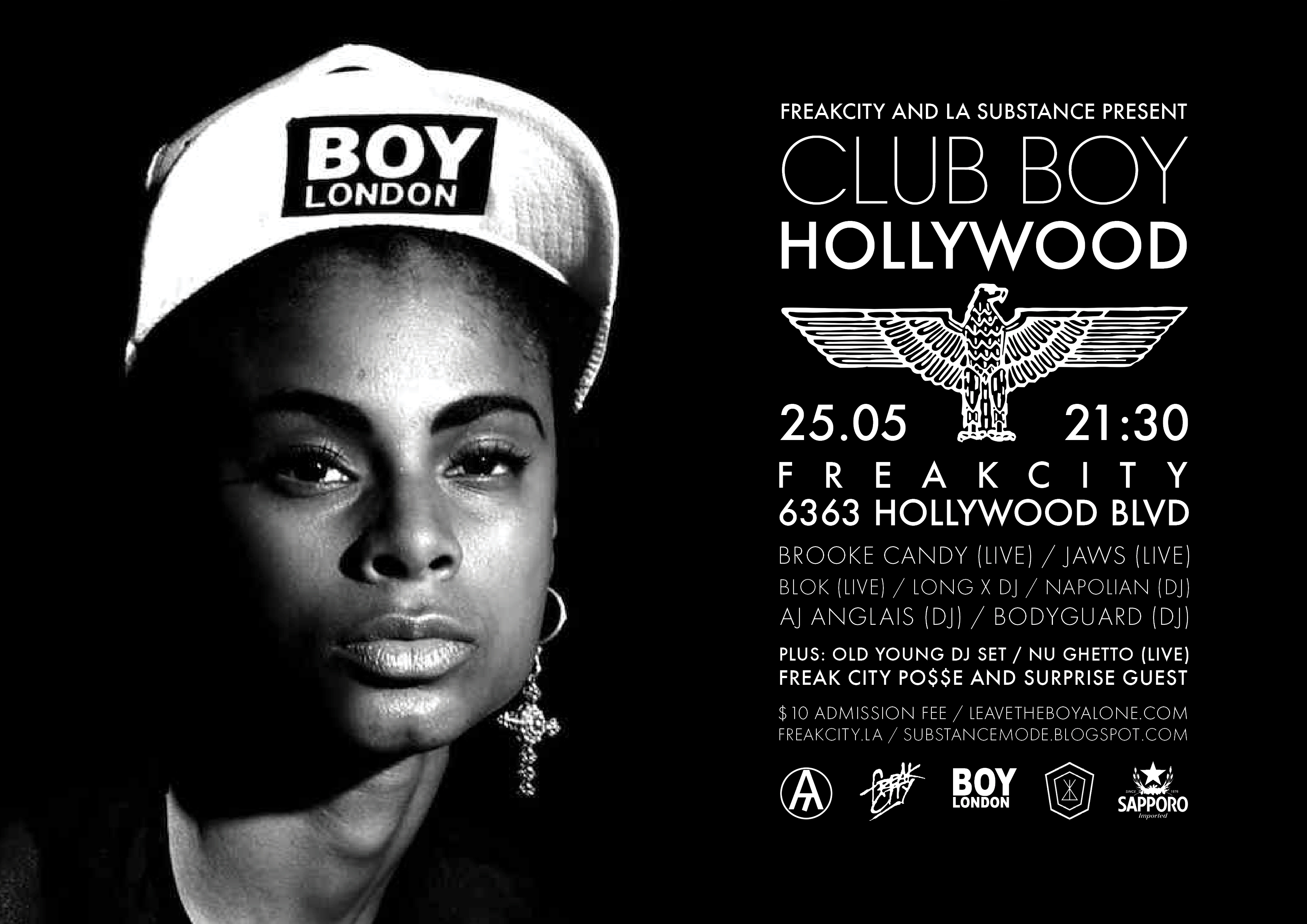 FREAKCITY together with LA SUBSTANCE are throwing the bash and there will be live acts and DJ sets from Brooke Candy, Jaws and Blok, Napolian, Bodyguard, AJ Anglais and LONG X DJ who are the two masterminds behind BOY’s relaunch.