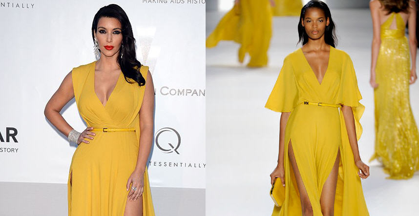 Yellow is my fave color and Kim Kardashian definitely wore it right at the 2012 amfAR Cinema Against AIDS Gala during the 2012 Cannes Film Festival at Hotel du Cap. She looked sultry in a gown from Elie Saab’s Spring 2012 collection, fully equipped with a plunging v neckline, a belted waist and double thigh-high slits.