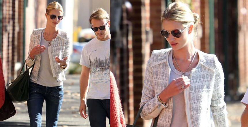 I have been coveting an IRO Jacket for sometime now and Rosie Huntington-Whiteley wore a great style while out and about in Sydney: the Uma Jacket. She paired it with high-top sneakers, denim, and her favorite Céline bag. Just a really simple and relaxed outfit given an infusion of luxury with high-fashion pieces.