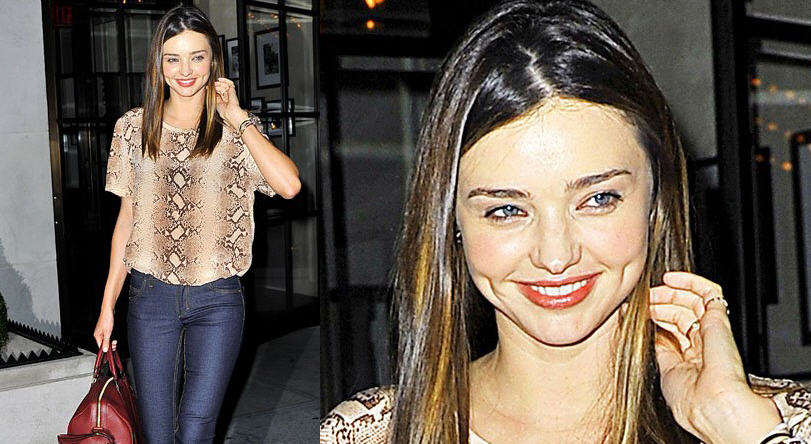 Miranda Kerr sure does love herself some Equipment! She was spotted in another style from the brand while at Maialino Restaurant in New York City. This time, she wore her favorite Louis Vuitton Sofia Coppola SC Leather Bag with cropped denim and a Nude Python Riley T-Shirt. This look sure makes me wish that I would have pre-ordered this top back on Moda Operandi sometime ago!