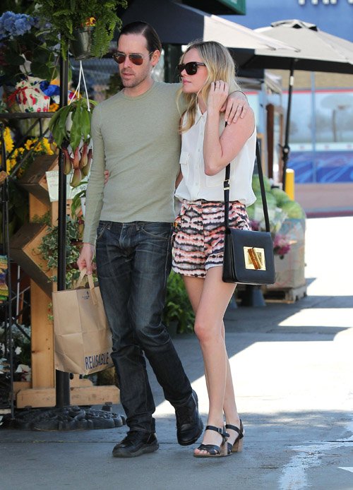 Kate Bosworth modeled the latter look while out and about with her boyfriend at Bristol Farms in West Hollywood. She paired the blouse with printed shorts from Topshop, Newark Mid Block Heel Sandals from Topshop and a Tom Ford Natalia Bag. Cute!