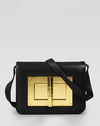 Her shorts are sold-out, but thankfully her sandals are not. They are crafted from black leather and feature criss cross straps and 3″ wooden block heels. Her bag is just to-die-for! First of all, let’s rejoice at the fact that we can now buy Tom Ford handbags and shoes on-line. It is crafted from shiny kidskin and boasts a flap top and a large golden turnlock center with logo engraving.