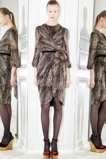 Giambattista Valli’s Animal Print Silk Charmeuse Dress retails for $3415. Visit www.net-a-porter.com to purchase and www.giambattistavalli.com for more information. See Jessica’s dress on the runway below.