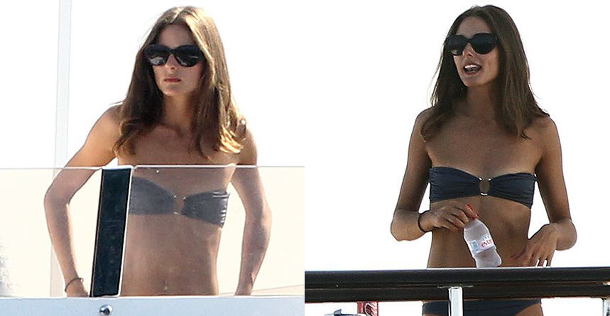 Olivia Palermo is soaking in the sun on Valentino’s yacht in Spain and for the occasion, she chose a Violet Lake Domino Bikini Top and Kissy Bikini Bottom in slate.
