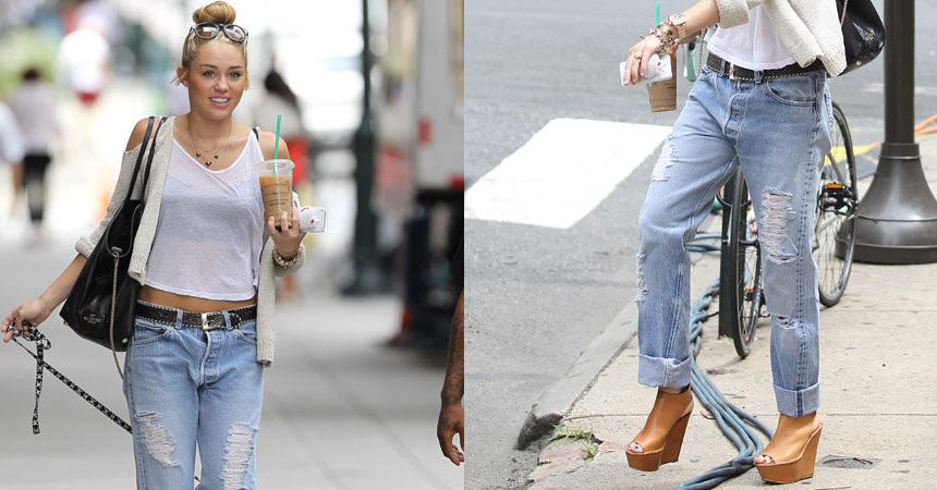 Miley Cyrus kept it simple while out and about in Philadelphia. She paired a cardigan with a crop top, boyfriend jeans and Chloé Tucson Wedges. It is a bit too hot for this look in NYC right now, but this is great to recreate for Fall!
