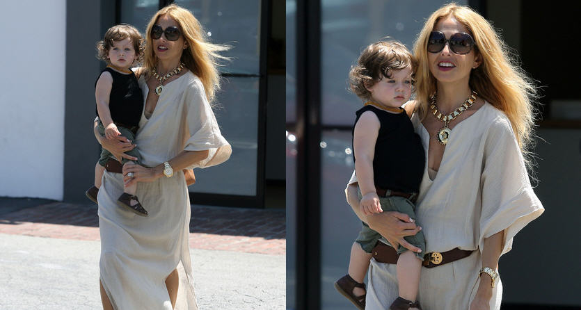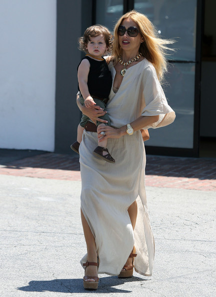 I adore Rachel Zoe’s style and she was seen at Hugo’s Restaurant in West Hollywood with her adorable son in a Kauai Dress from Nation LTD. You know she never leaves home without amazing accessories so she added a great statement necklace, a belt cinching her waist, wedges and an Antigona Satchel from Givenchy.