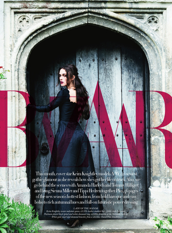 The latest September 2012 cover has been released and it belongs to none other than Keira Knightley who graces Harper’s Bazaar UK for the month.