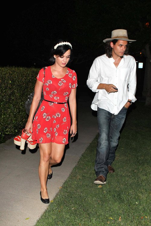 I try to stay away from gossip, but it’s pretty hard when Katy Perry and John Mayer keep getting photographed together! He looked pretty hot (and tan) while both were out in Los Feliz, California. She looked feminine and flirty in black flats, a white headband and a LOVE Coral Flower Print Chiffon Open V-back dress. Cute!