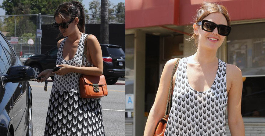 Oh how I love Rachel Bilson’s style! She was spotted out and about in Los Angeles wearing Rag & Bone’s Mercer Print Sleeveless Dress and Chloé’s Elsie Shoulder Bag. So cute! I would have loved to see a colorful belt on her to give her dress a more flattering fit, but it’s still great nevertheless.