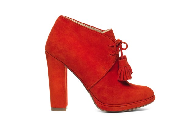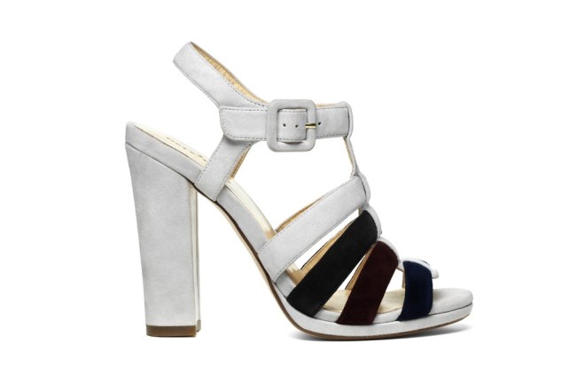 Three styles will be featured in the capsule collection: the above heeled desert boot, a colorblock strappy sandal and a peep-toe sandal.