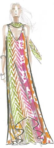 “Inspired by the rich color and pattern of Marrakesh, spring is all about shakin’ it in the souk. Rich shades of rosy coral, desert orange, and palm green are cooled off with hamman white, icy silver and navy, creating an exotic, adventurous, endlessly chic collection with an underbeat of funk.” – Calypso St. Barth Creative Director, Elisa Miller