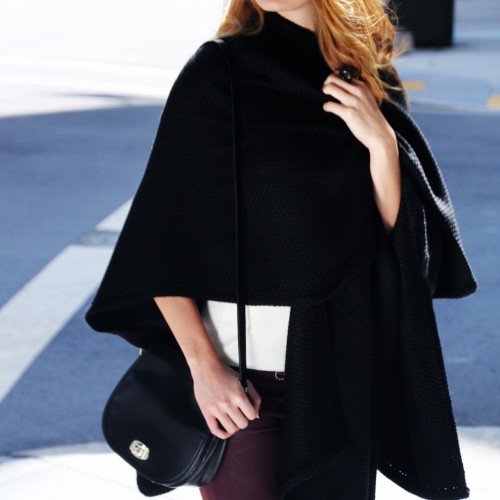 The cape is really quite luxurious for such an affordable price and is made from wool taken from eco-friendy Merino sheep which produce some of the finest and softest wool on the planet. Did you know that “merino” came from the name of the kind of sheep? I had no idea! I love learning through fashion.
