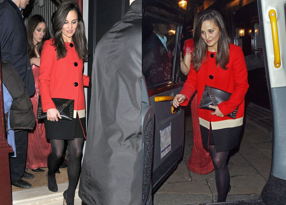 Pippa Middleton is just as big across the pond as her newly royal sister and her style is definitely coveted by women the world over. It’s very simple and chic and while out at Lulu’s Nightclub in London, she wore Kate Spade’s Garby Coat and a Night Fever Clutch from Tabitha London. Cute!