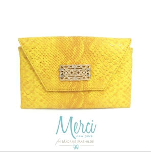 Jennifer Niles is the mastermind behind Madame Mathilde and she is donating 20% of the proceeds of her clutches with Merci NY to the relief efforts with a 10% discount. See some of the designs below.
