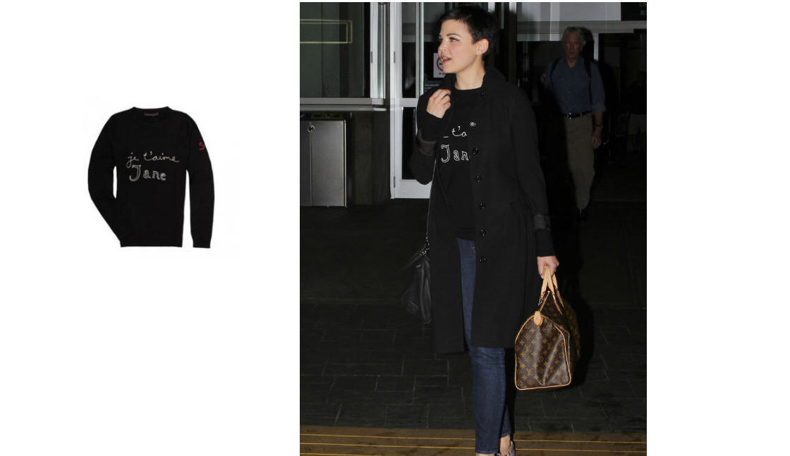 Now that it is snowing in NYC, I officially can only think about buying cozy knits and warm boots. We’ve seen everyone wearing Bella Freud’s Je t’aime Jane sweater including Alexa Chung, Olivia Wilde, and now Ginnifer Goodwin, so I think we can crown it an “It” piece that is especially perfect for Fall and Winter.