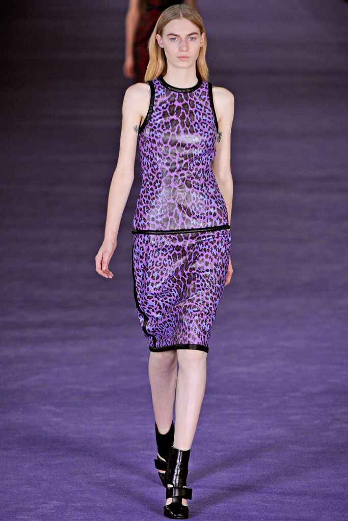 I cannot get enough of Caroline Sieber’s style and the brunette beauty definitely made a splash at the 58th Annual London Evening Standard Theatre Awards. For the occasion, she wore a blue and purple leopard print dress, fully equipped with leather trim from Christopher Kane’s Fall 2012 collection.