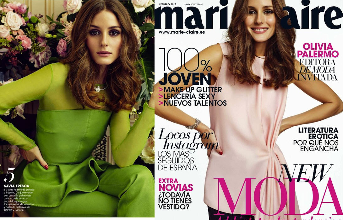 Olivia Palermo graces the cover of Marie Claire Spain’s February 2013 issue, showing just how big she is in Europe! In her fashion spread, she wears looks from Louis Vuitton, Valentino and more.