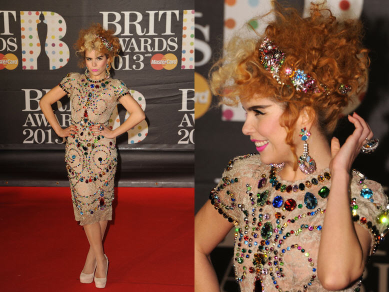 Paloma Faith continued her Dolce & Gabbana reign in a nude lace dress with colorful crystal embellishment from the brand’s Spring 2012 collection.