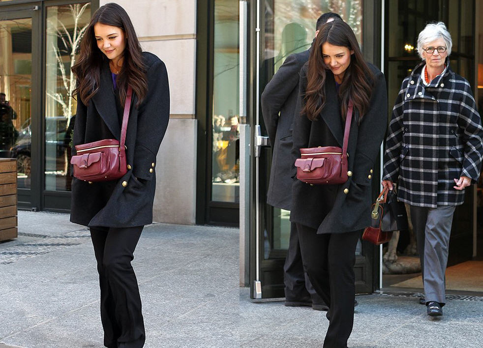 Katie Holmes kept it casual while out and about in the Big Apple in an Isabel Marant David Double Breasted Coat and a Derek Lam Newton Bag.