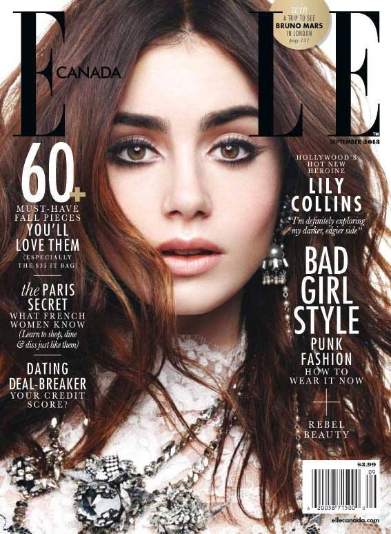 Lily Collins graces the cover of ELLE Canada’s September 2013 issue.