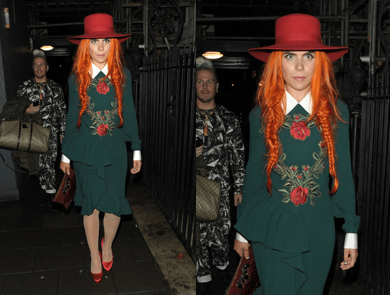 Paloma Faith always goes bold, thus the songstress paired her fiery hair with her eccentric style in a Moschino Fall 2013 embroidered flower motif dress with peplum detailing at Harper’s Bazaar’s London Fashion Week Closing Party.