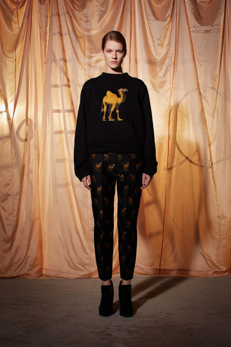 If there is one thing Emma Cook is loyal to it’s prints and the designer went full speed ahead with patterns for her Fall 2014 collection. She was heavily influenced by the idea of a traveling circus, thus melding parts from different cultures including the Middle East and the great old U.S. of A.