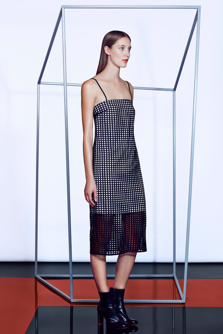 I’m a history buff, thus I was pleased upon learning that brother and sister design duo Camilla Freeman Topper and Marc Freeman were inspired by Francis Bacon’s Three Studies of Lucian Freud for their Fall 2014 collection. The architecturally-inspired crystalline frame encapsulating Freud’s figure was the true influence and rendered itself in the clean cut lines of the designs that were punctuated with bouts of femininity and sporty chic detailing.