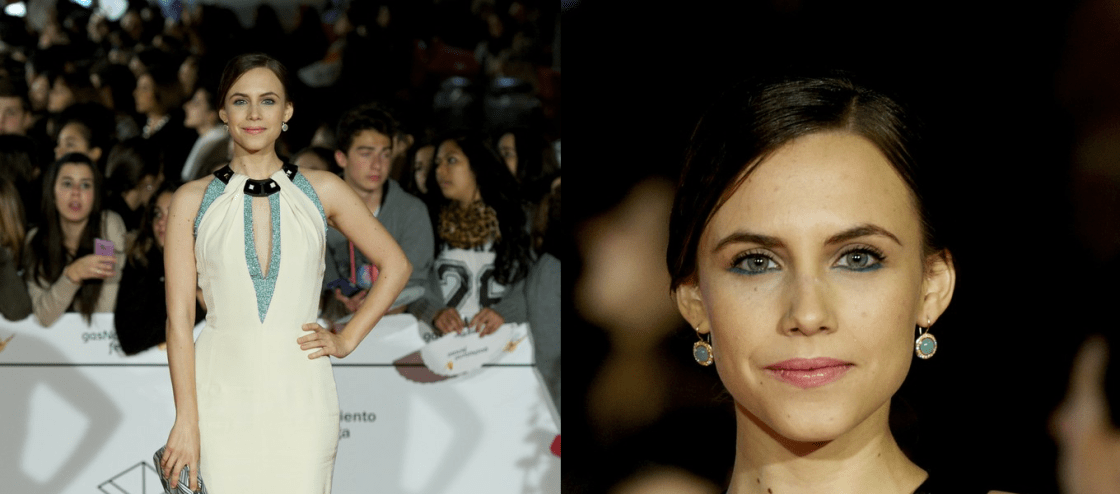The 17th Malaga Film Festival has come to a close! Actress Aura Garrido was spotted at its Closing Ceremony in an ivory crepe Carolina Herrera gown with green embellishment and contrast halter neck detailing, cascading down to a keyhole for a sultry peek of skin. Pretty!
