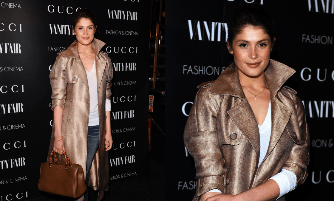 Gemma Arterton was the epitome of simple and chic at the Gucci and Vanity Fair London Screening of The Director. She kept it casual yet polished in a Gucci Nude Canvas Double Breasted Trench, Bamboo Shopper Leather Tote, and Patent Leather Horsebit Loafers.