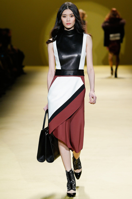 Kristen Wiig showed off a blonde bob at the Hateship Loveship Screening at the Museum of Modern Art. To offset her new hair, she sported a J. Mendel Fall 2014 colorblock leather panel dress and Alejandro Ingelmo Tron Leather Pumps.