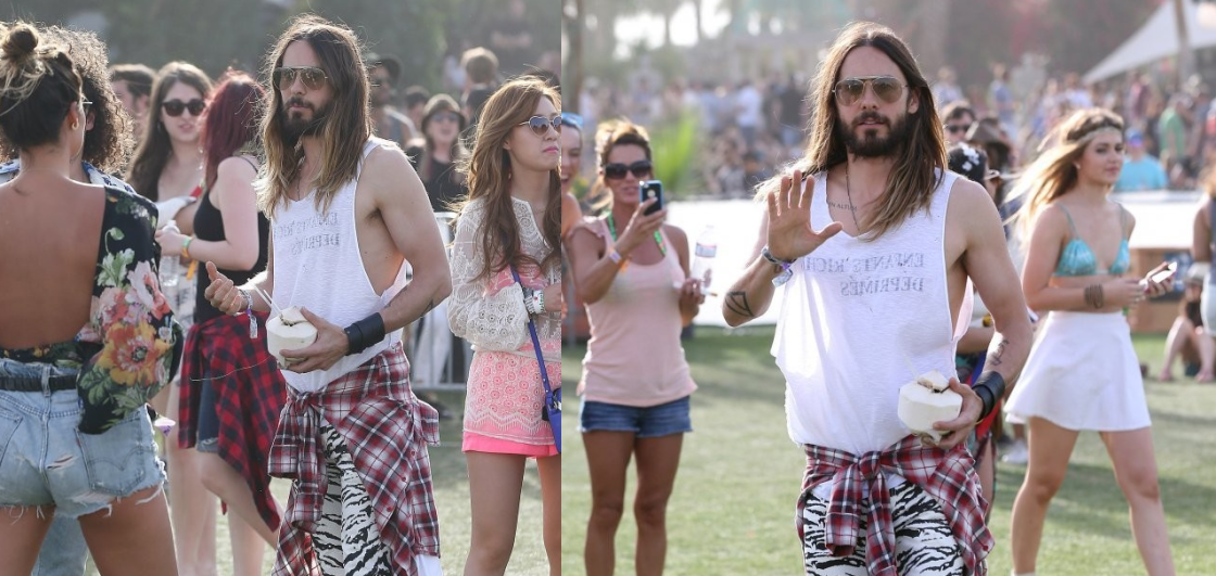Jared Leto (swoons) was running around Coachella 2014 in a slew of looks, one anchored with a rocker-inspired pair of Saint Laurent Original White and Black Tiger Printed Skinny Jeans.