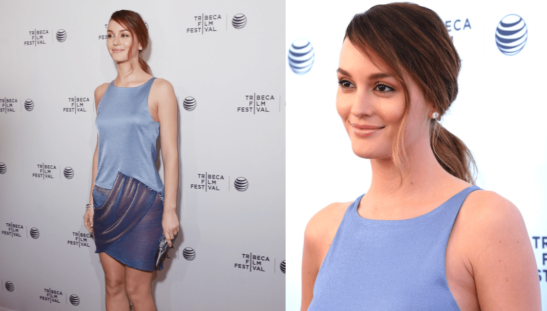 Leighton Meester looked Spring-perfect at the 2014 Tribeca Film Festival Premiere of Life Partners in an Emporio Armani blue dress with an iridescent draped skirt from the brand’s Spring 2014 collection. Gorgeous!