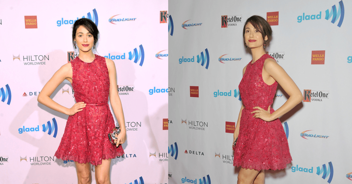 Emmy Rossum was pretty in pink at the 25th Annual GLAAD Media Awards in a raspberry-hued lace embellished dress from Elie Saab’s Spring 2014 collection. She never disappoints on the red carpet!