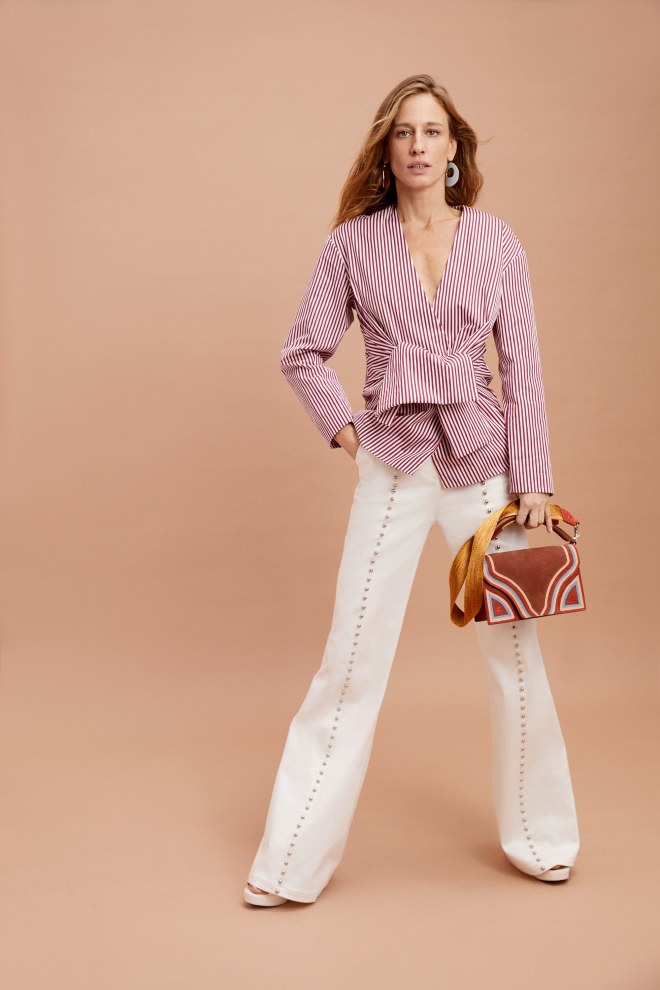 The trousers on display had a real retro vibe—high waists, wide and flare legs, stovepipe silhouettes, and stud embellishment.