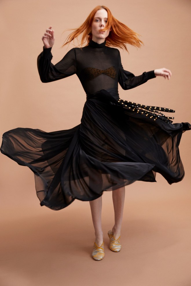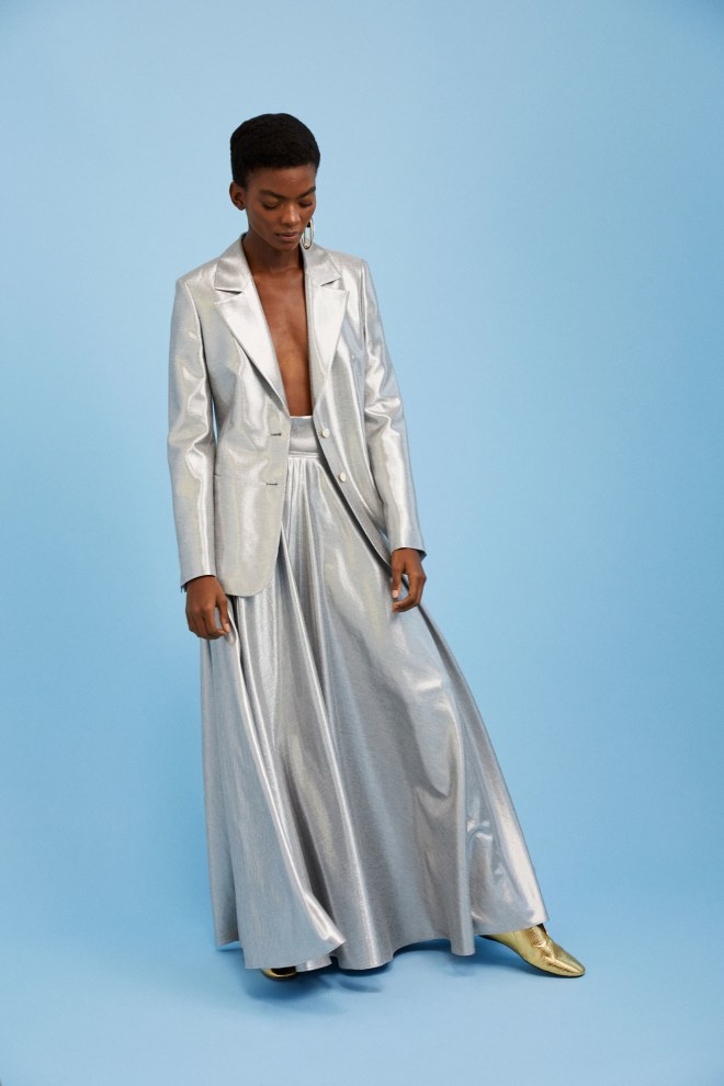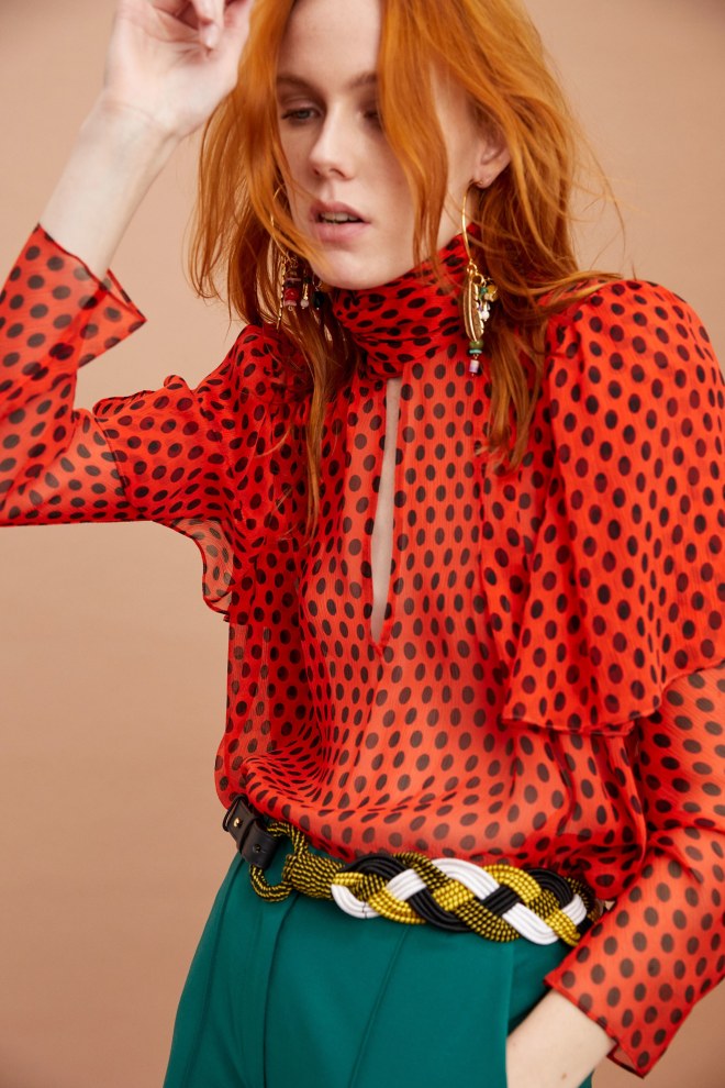 Saunders had a lot of fun with polka dots on crop tops, transparent, high-neck keyhole pieces, maxi skirts, and curve-hugging dresses.