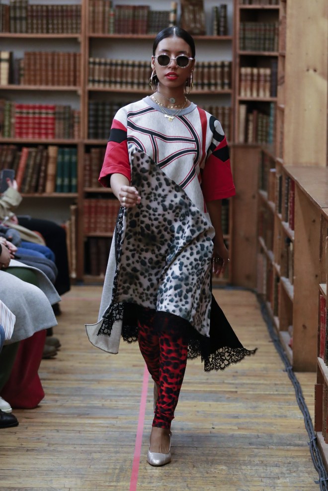The Paris and New York graphics really resonated with me: as a native New Yorker who happens to love both cities. I’m also a big fan of a legging or dress slash tunic moment, thus I was intrigued by the way Kocher layered leopard leggings under a great deal of the assemblage’s more billowing and voluminous pieces.