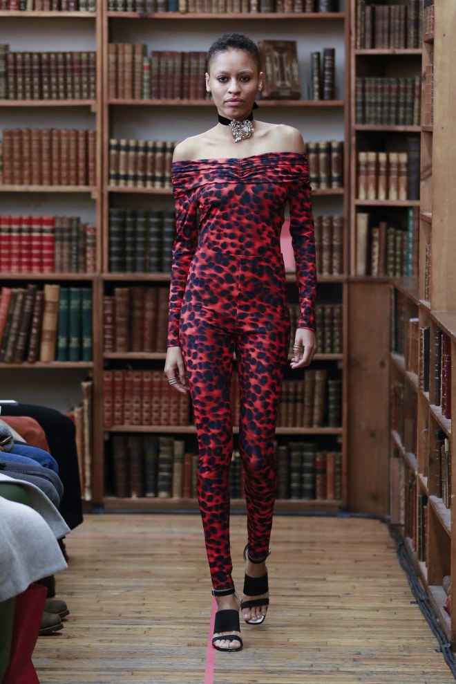And what’s more fierce than animal print? It was all over the collection in bold hues that radiated Kocher’s showstopping, yet functional sensibility. I most enjoyed a zip-front jumpsuit and long-sleeve peplum frock: two pieces that would certainly get a lot of wear in my wardrobe.