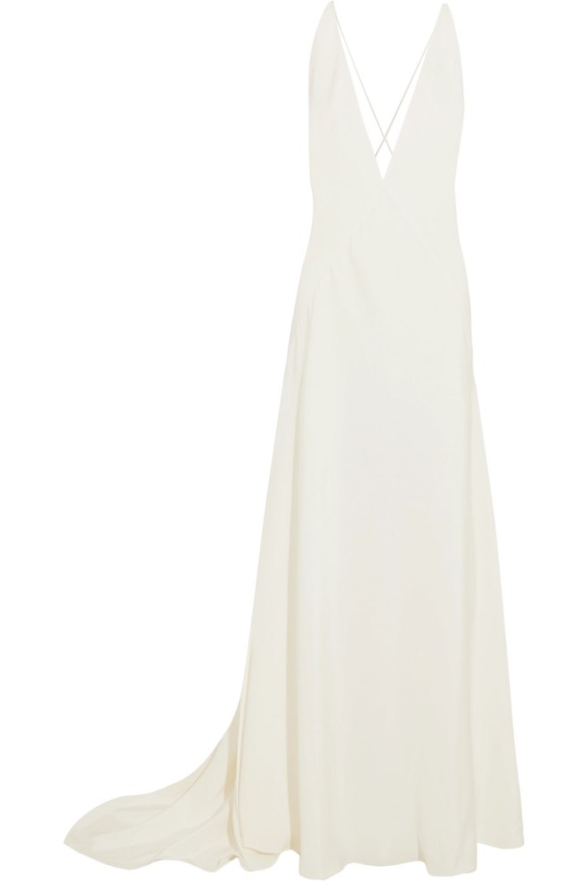 Michael Lo Sordo’s White Alexandra Silk Satin Gown retails for $1,530. Visit www.netaporter.com to purchase and www.michaellosordo.com for more information.